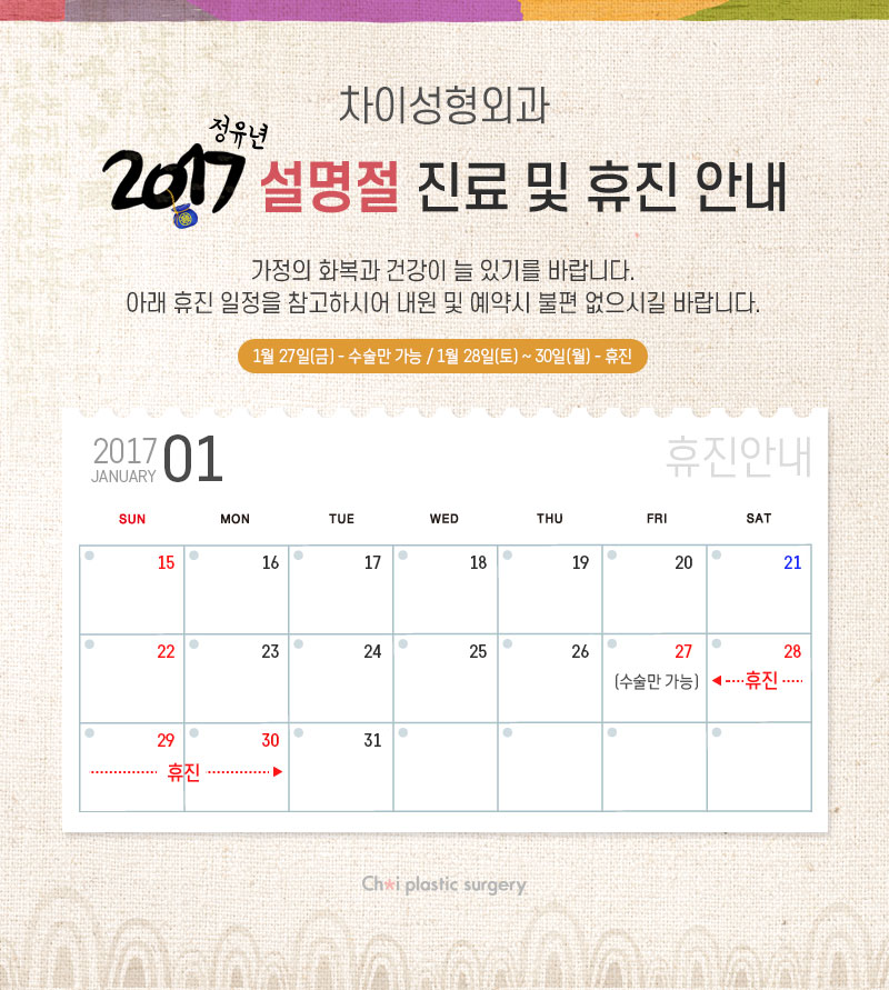 2017 설명절 진료 및 휴진 안내